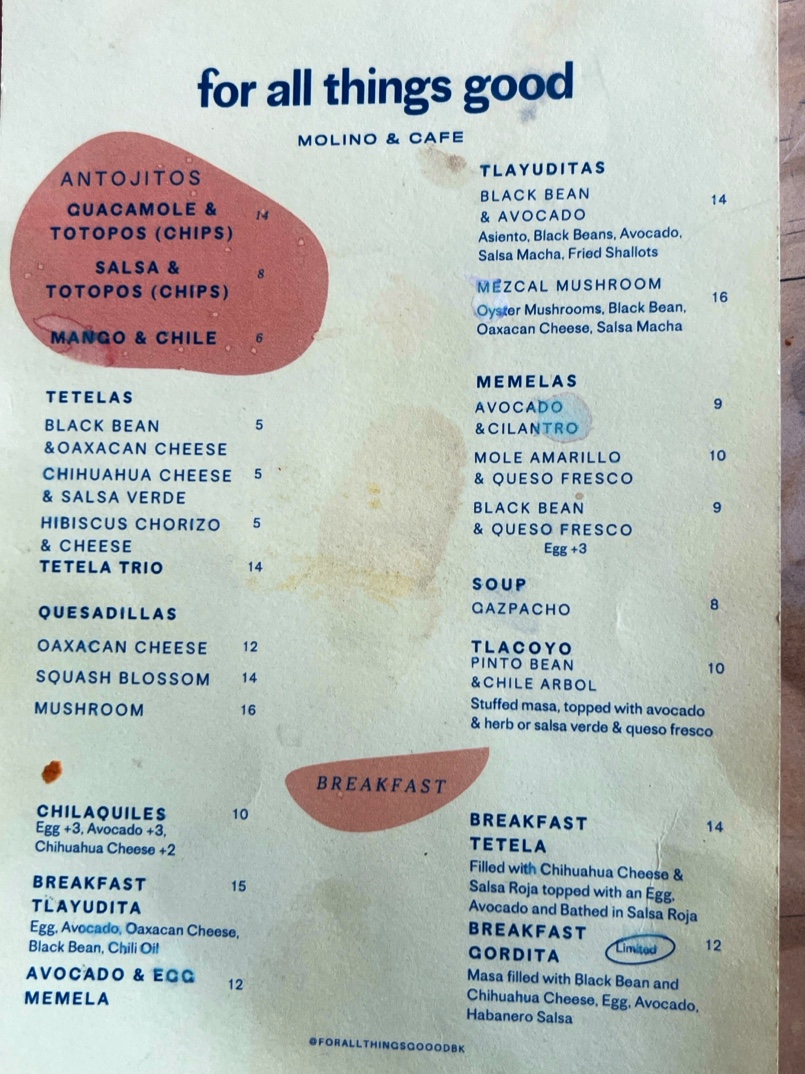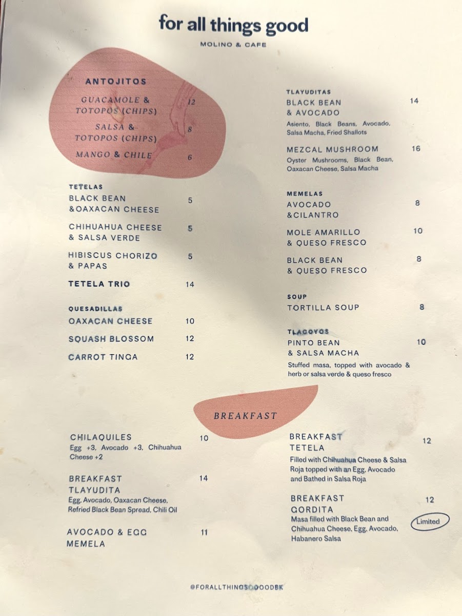 Limited. Masa filled with black bean and chihuahua cheese, egg, avocado, and habanero salsa.